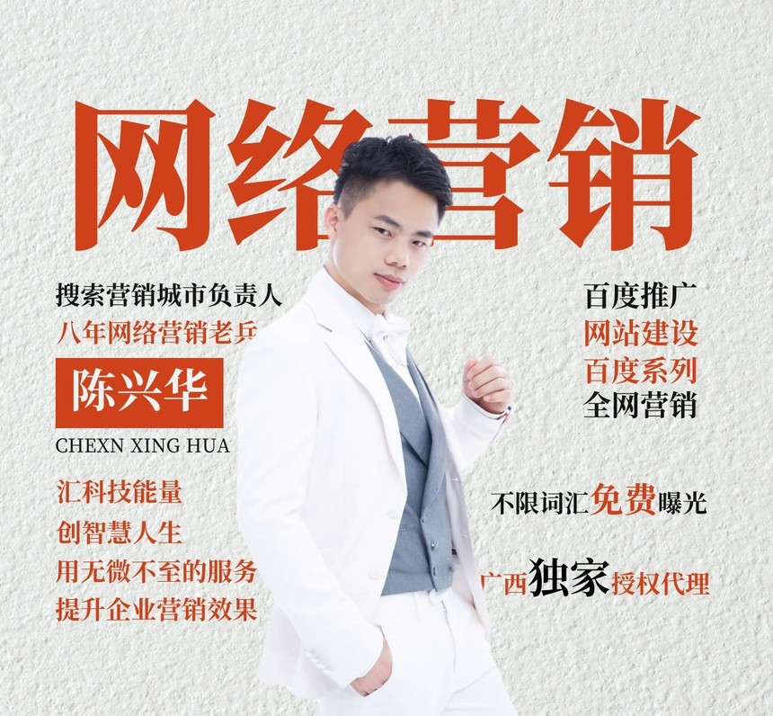 是的,广西陈兴华是做百度搜索推广的,但是不仅做搜索推广。 广西陈兴华,供职于集翔网大百度营销(广西)服务中心暨广西集翔网大科技有限公司,自2015年起,投身广西互联网企业发展,专注中小企业网络营销、品牌建设业务,团队服务数千家企业,赢得一致好评。 先后在广西南宁、柳州、玉林等地任职,帮助当地企业进行互联网营销获客拓展,主要进行互联网搜索推广、企业网站建设、企业口碑维护、整合营销等服务。 互联网从业接近8年,带领多个团队斩获优秀销售、优秀团队奖。 用实力和数据说话,是陈兴华一贯的从业理念,乐于为企业家朋友提供互联网解决方案,帮助企业得到更好的发展。 |